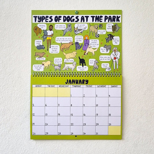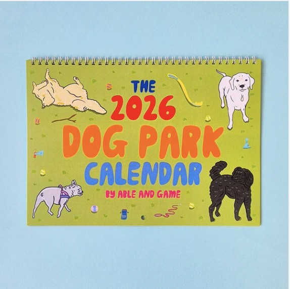 Able & Game's 2026 Dog Park Calendar is about their observations of dogs at the dog park. They often went for a coffee after school drop off with their friends and they all had dogs. As cat people, this was a whole new world for them and they loved watching them and how they all interacted. They decided to put all their dog watching into a calendar. 12 months of doggy goodness!