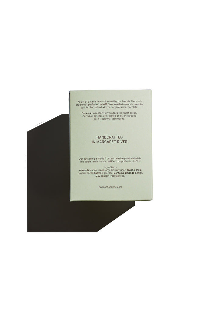 The art of patisserie was perfected by the French. The iconic brulee was perfected in 1961. Slow roasted almonds, crunchy dark brulee, paired with our organic milk chocolate.