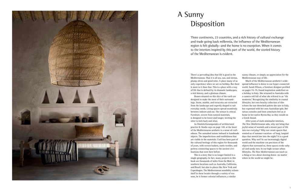 A modernist take on Mediterranean aesthetics, a new movement in interior design embraces sumptuous minimalism through warm, earthy tones, and natural materials.