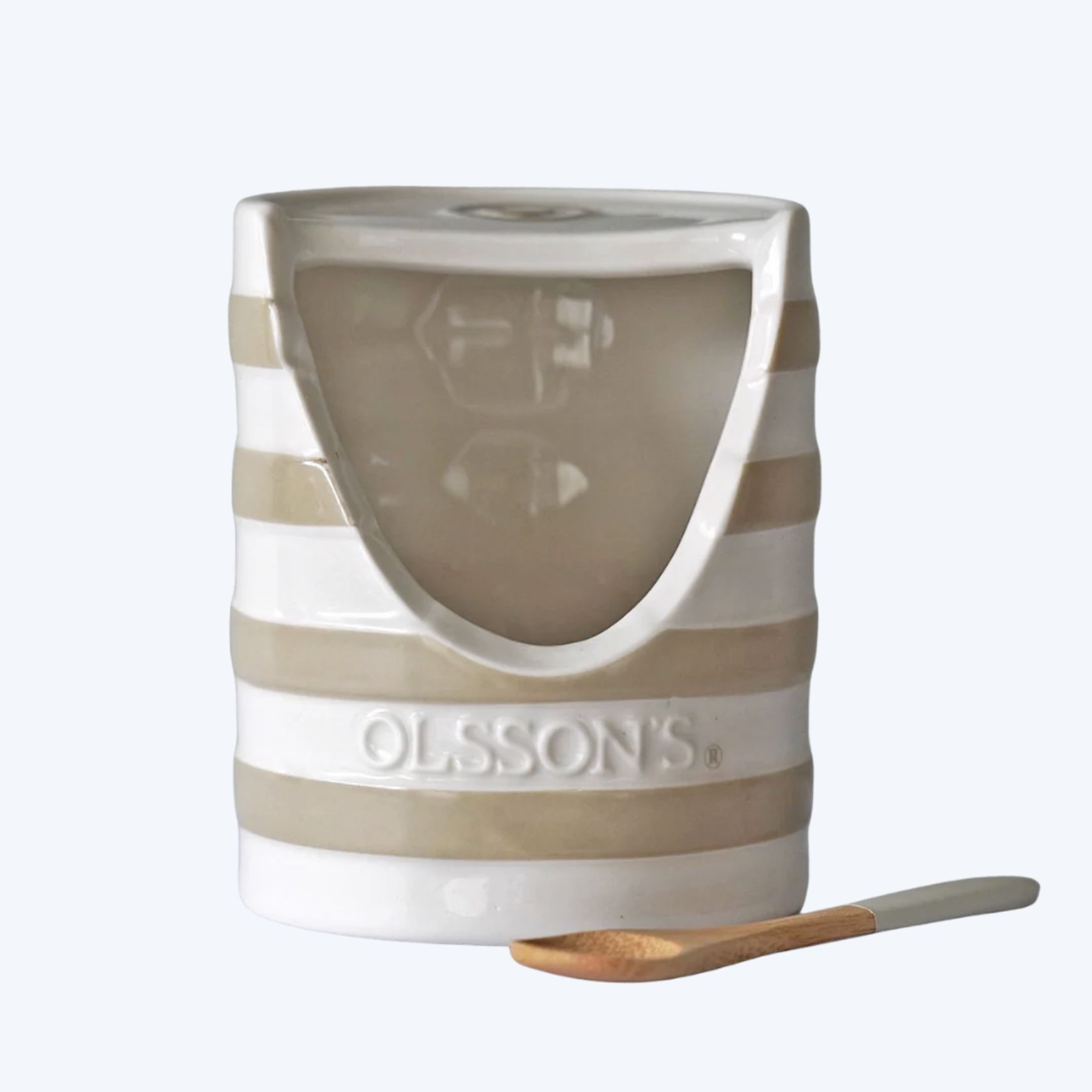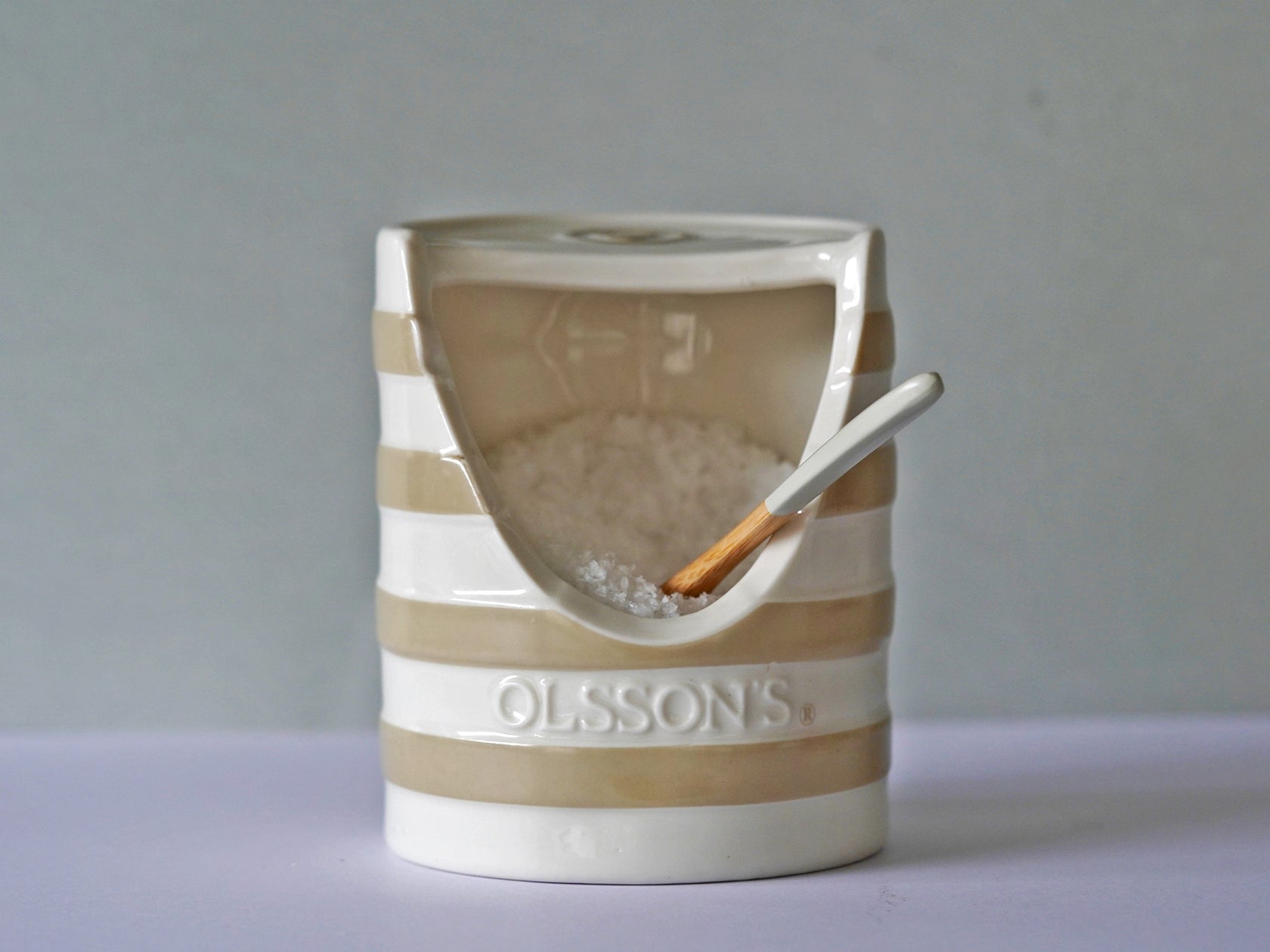 Olsson's luxe new storage solutions have arrived to help enhance the cooking and drink-making experience at home. Versatile and designed to hold any of your favourite Olsson's salts, it is the perfect addition to any home kitchen The Pinch Pot comes with a bamboo spoon for hygienic and easy access to salt while cooking