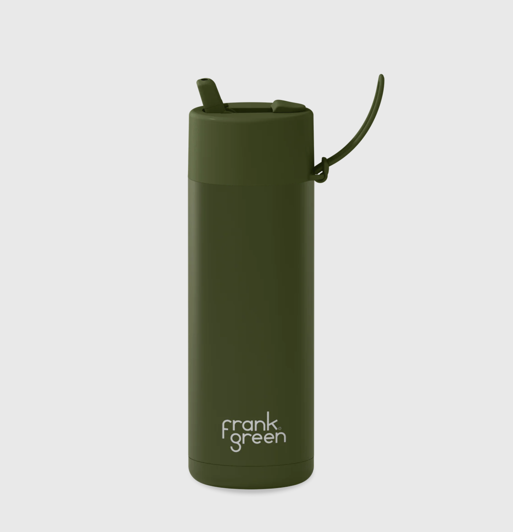 20 OZ/ 595 ML SS CERAMIC REUSABLE BOTTLE WITH FLIP STRAW LID - KHAKI