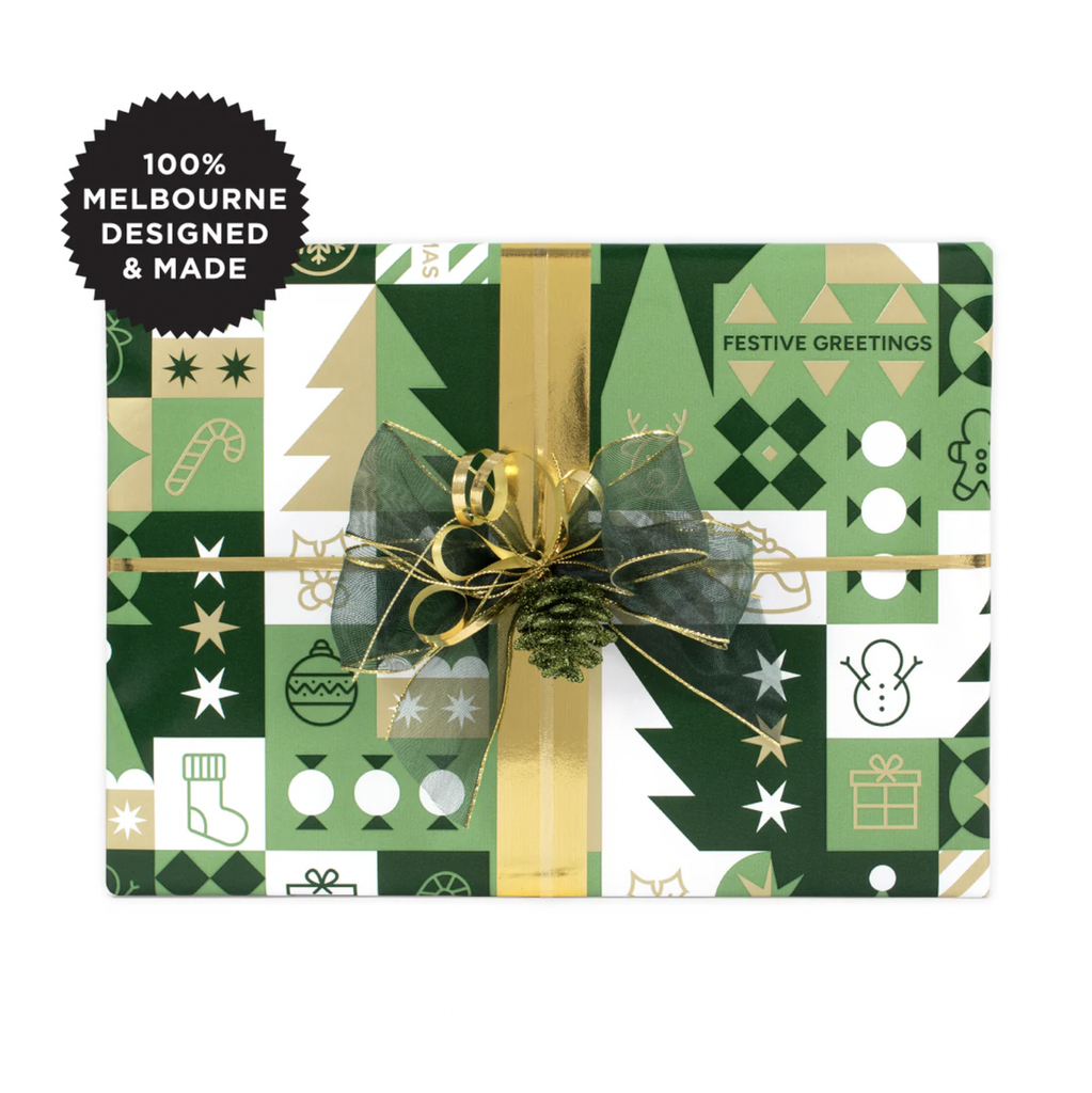 FESTIVE GREEN WRAPPING PAPER - ASSORTED SIZES
