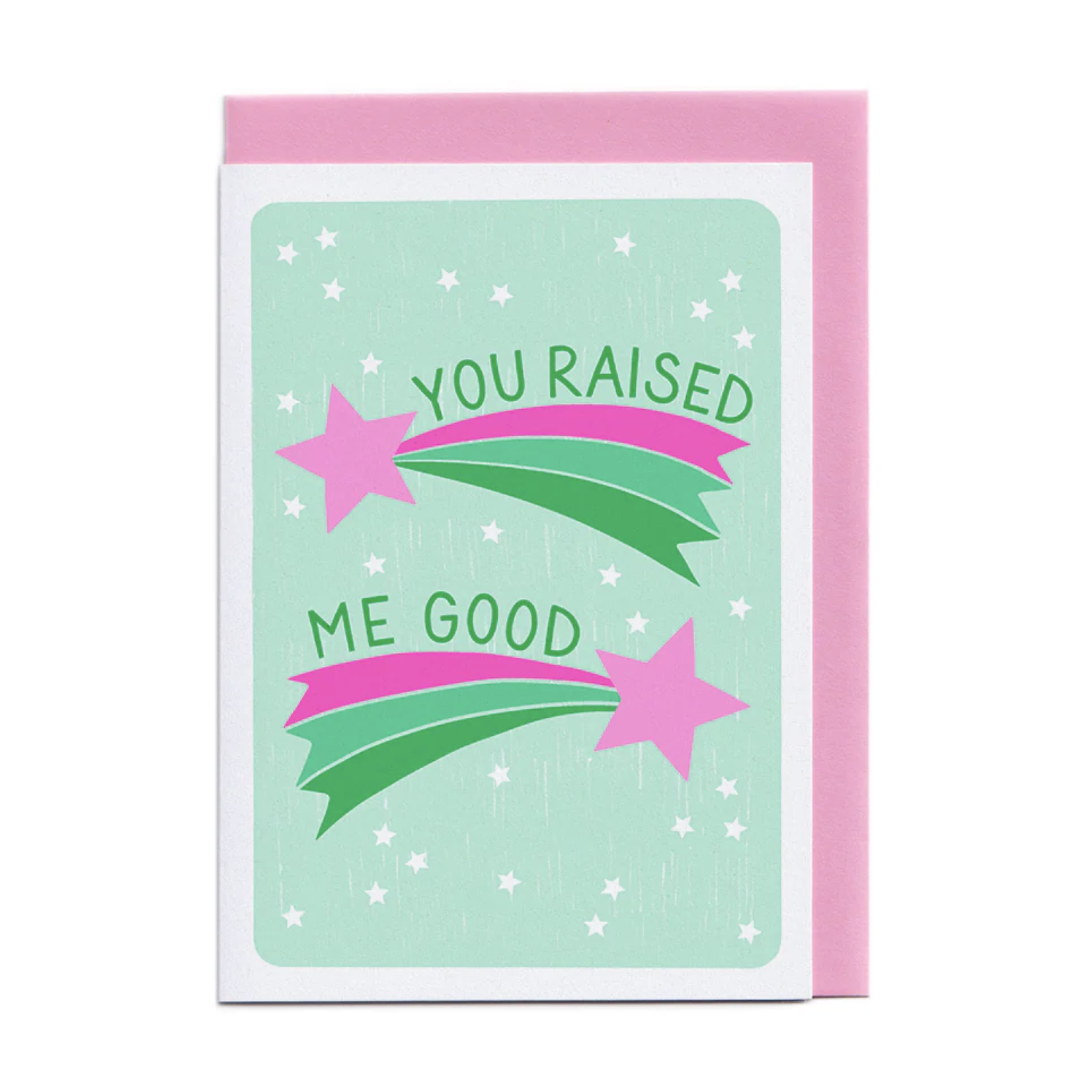 The greeting card measures 105 x 145mm when folded and is blank inside for a personal message. Risograph printed using soy-based inks onto 100% PCW recycled paper. Comes with a coloured C6 sized coloured envelope. Each card is packed in a 100% home compostable sleeve made from plant cellulose and sealed with a recyclable sticker made from 100% recycled paper and water soluble eco-friendly adhesive..