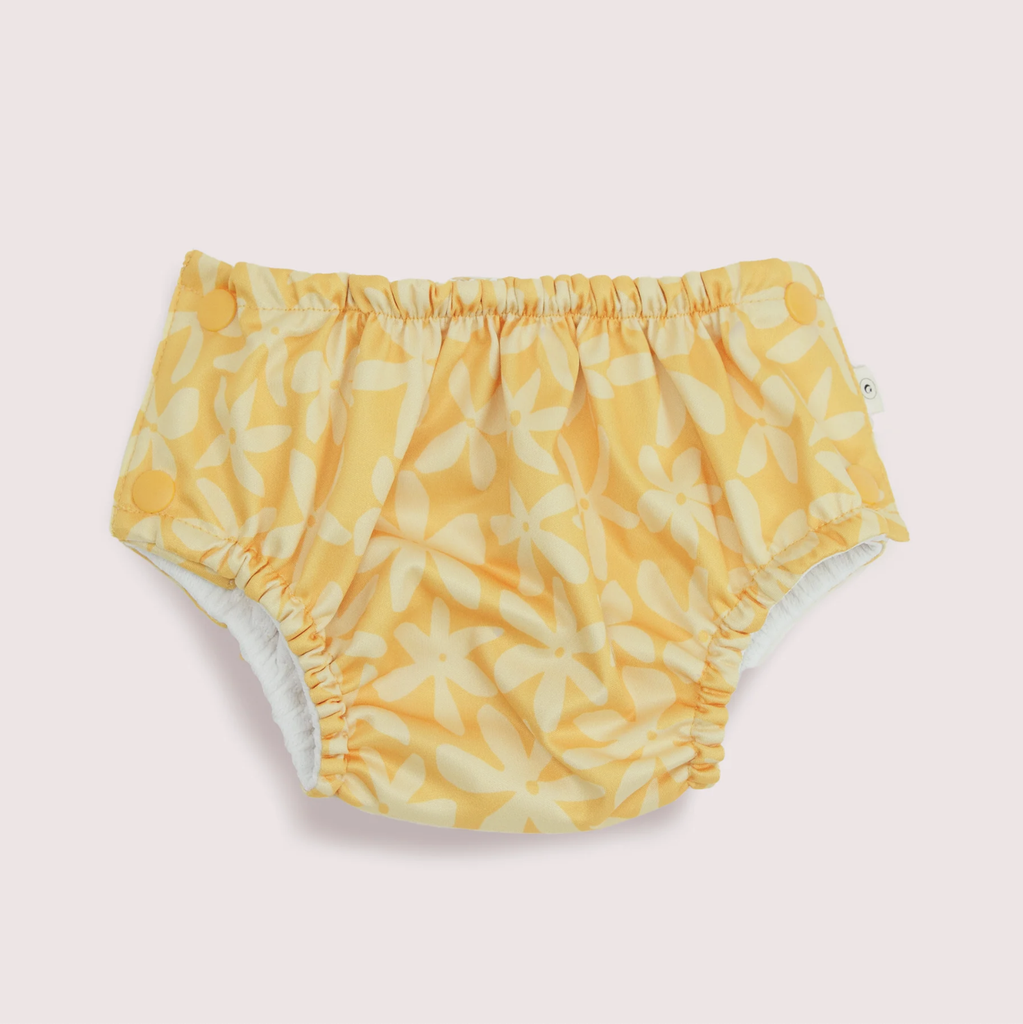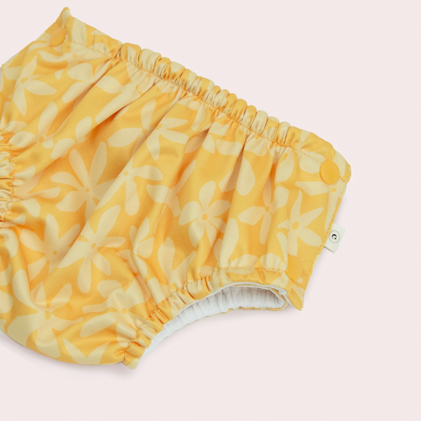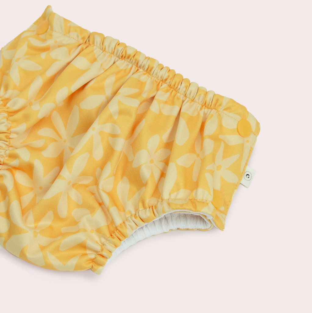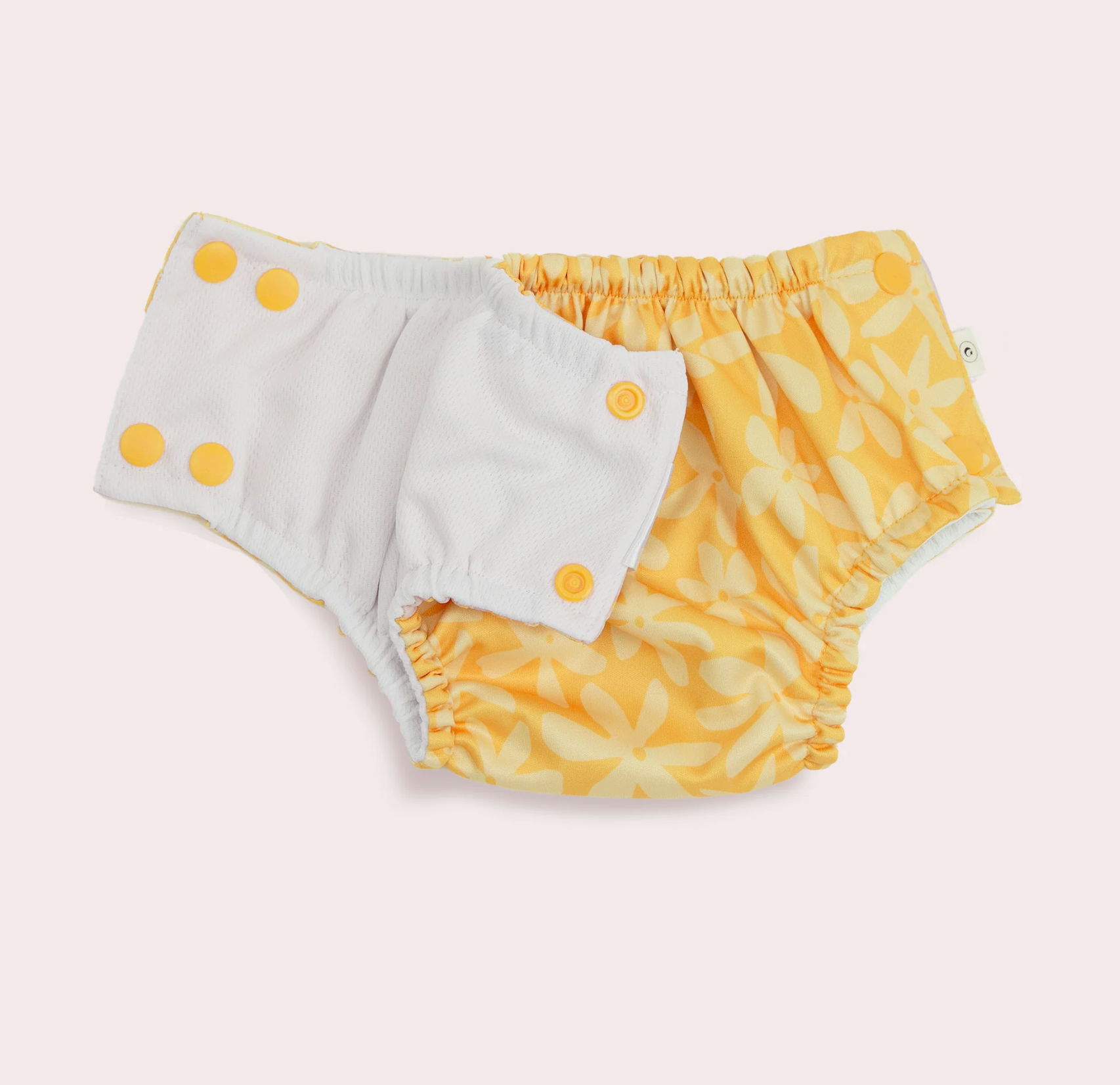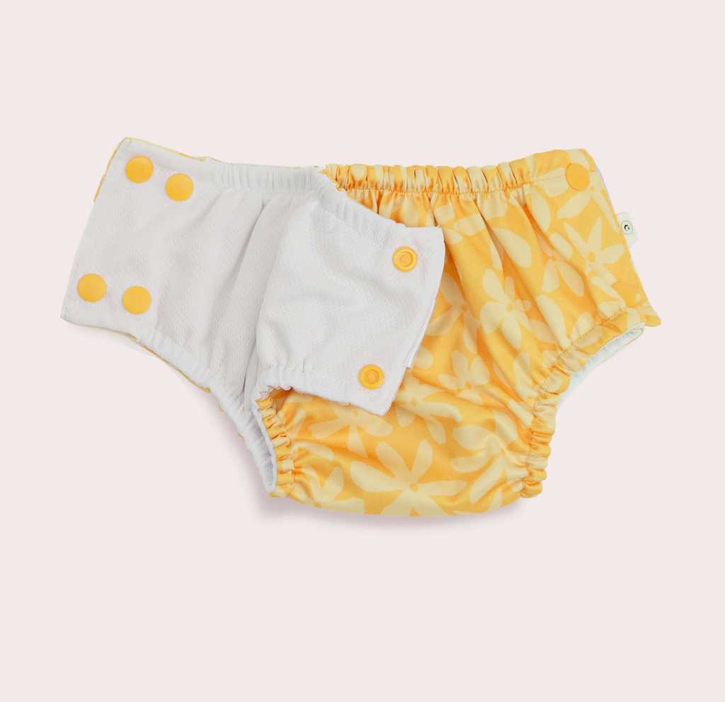 Daisy Swim Nappy is a reusable, eco-friendly alternative to disposables. The outer shell is crafted from OEKO-TEX Standard 100 certified recycled polyester (rPET), while the lightweight recycled mesh lining is designed to catch solids and allow liquids to flow through.