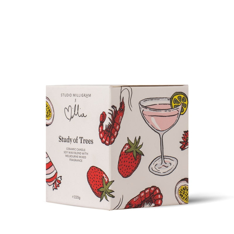 A 220g ceramic candle with kiln-fired original illustration, with kiln-fired original illustration, coated with a clear protective glaze. Featuring a soy wax blend that's made in Melbourne in our best selling signature scent.
