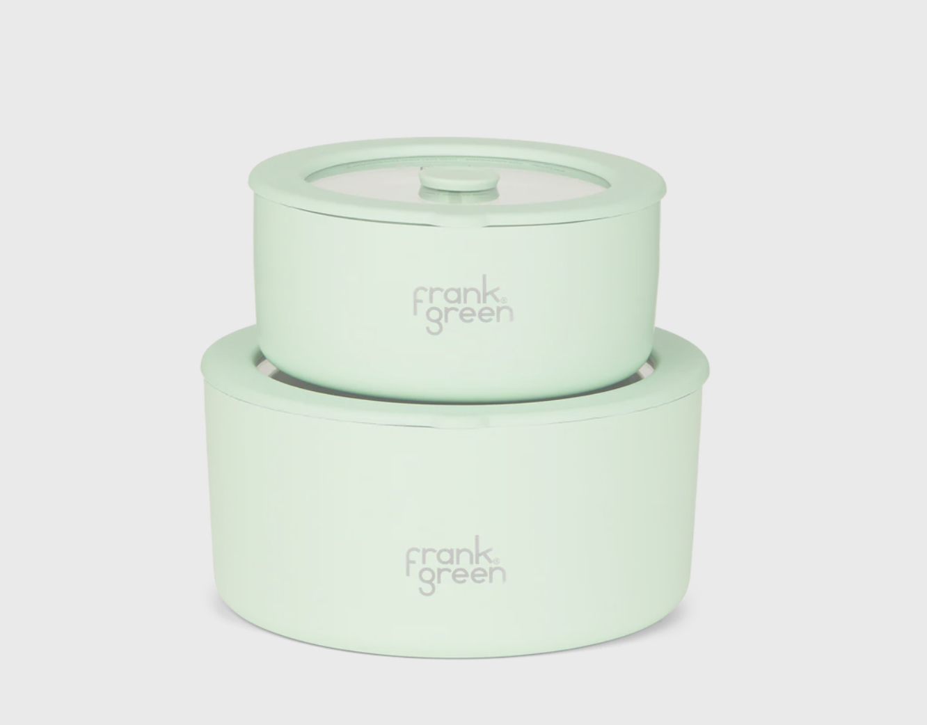 STAINLESS STEEL BOWLS WITH GLASS LIDS (2 PACK) - MINT GELATO