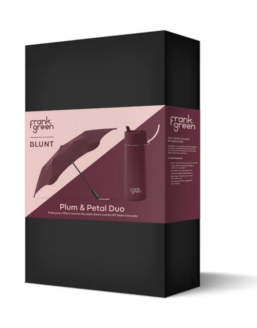 Two everyday essentials; 1 x BLUNT Metro and 1 x frank green 20oz/595mL ceramic reusable bottle. Both crafted with intention, built to last, and designed to be loved for years to come.
