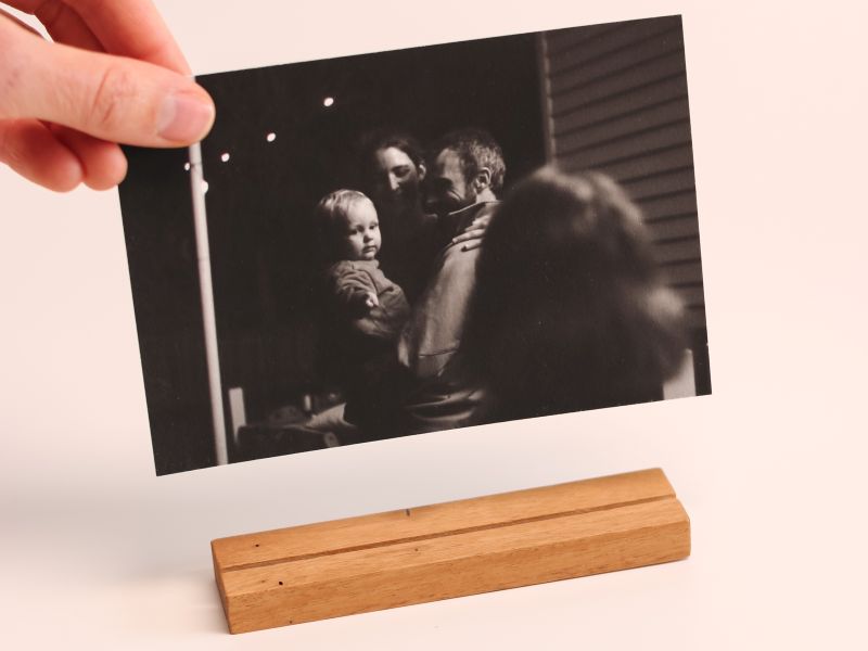 - It works well with a single photos or a small stack of photos (the slot is 2.5mm thick and 5mm deep)