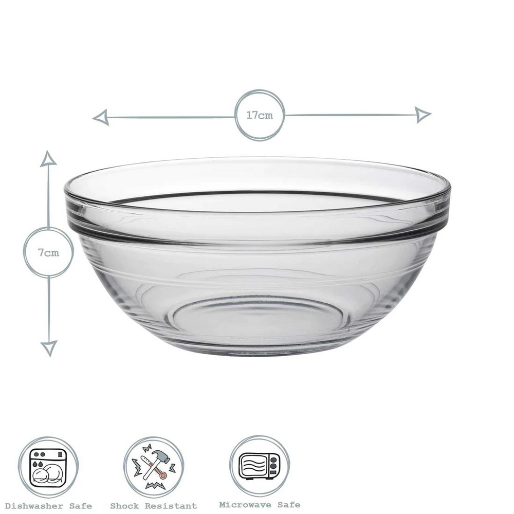 This sturdy 17cm (top diameter) meal-sized glass bowl is just the right size for children's meals, and they're dishwasher-safe for easy cleanup.