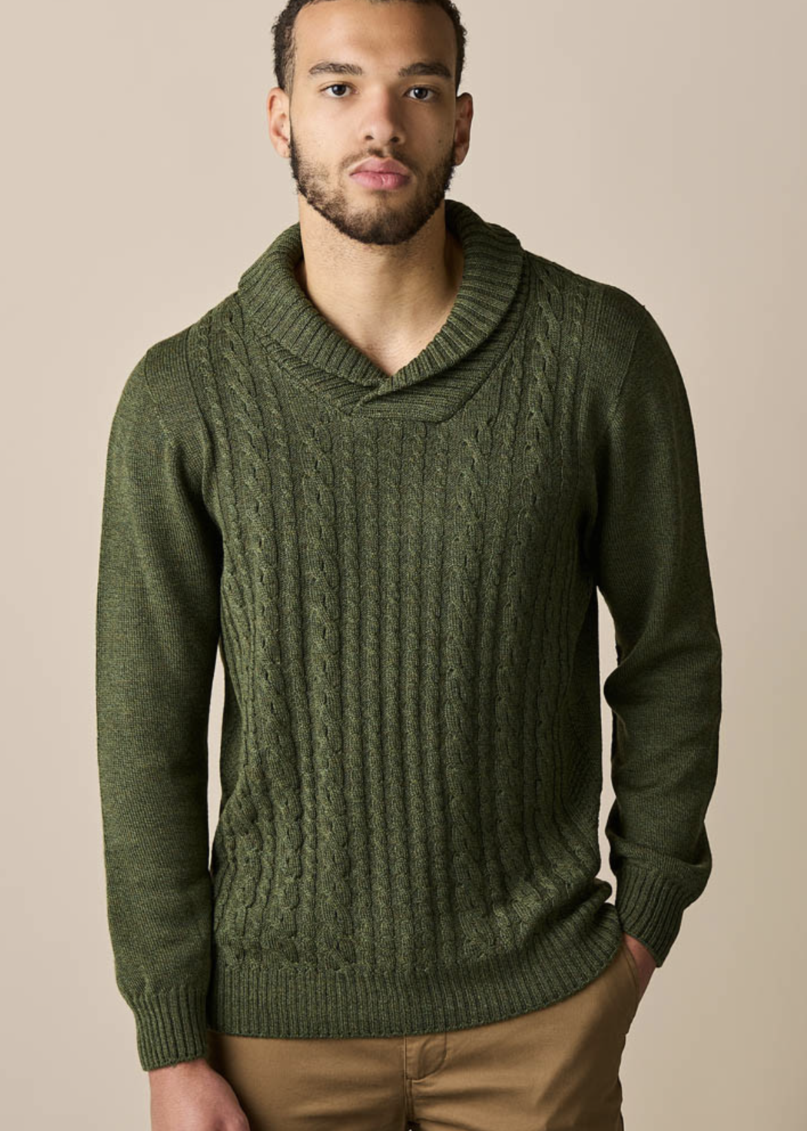 Our Henri jumper features a classic, Aran cable knit pattern and is finished with a cosy shawl collar for added warmth and sophistication. Made from premium Merino wool, it's the perfect wardrobe staple for those who value craftsmanship and heritage style.