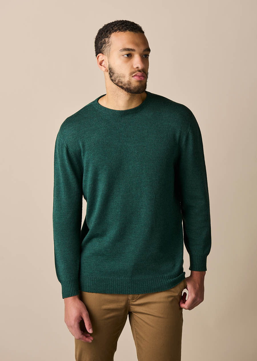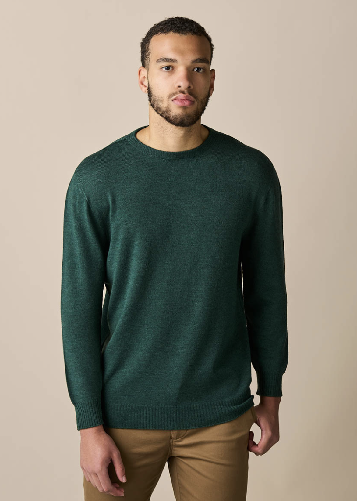 ROY FINE JERSEY CREW NECK MERINO TOP - HUNTER