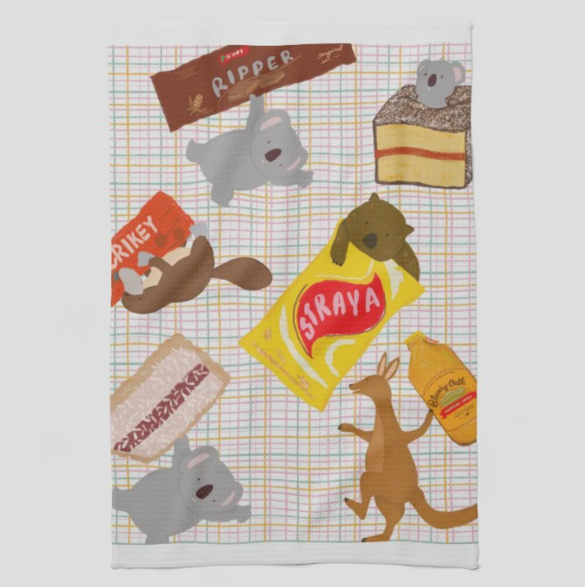 Bring a little Aussie pride to your kitchen with this vibrant Suki McMaster tea towel! Featuring fun and colorful Australian iconic snacks, this tea towel will make your home an ode to the land down under. An eye-catching addition to your kitechen and dining room, it's sure to leave a lasting impression!