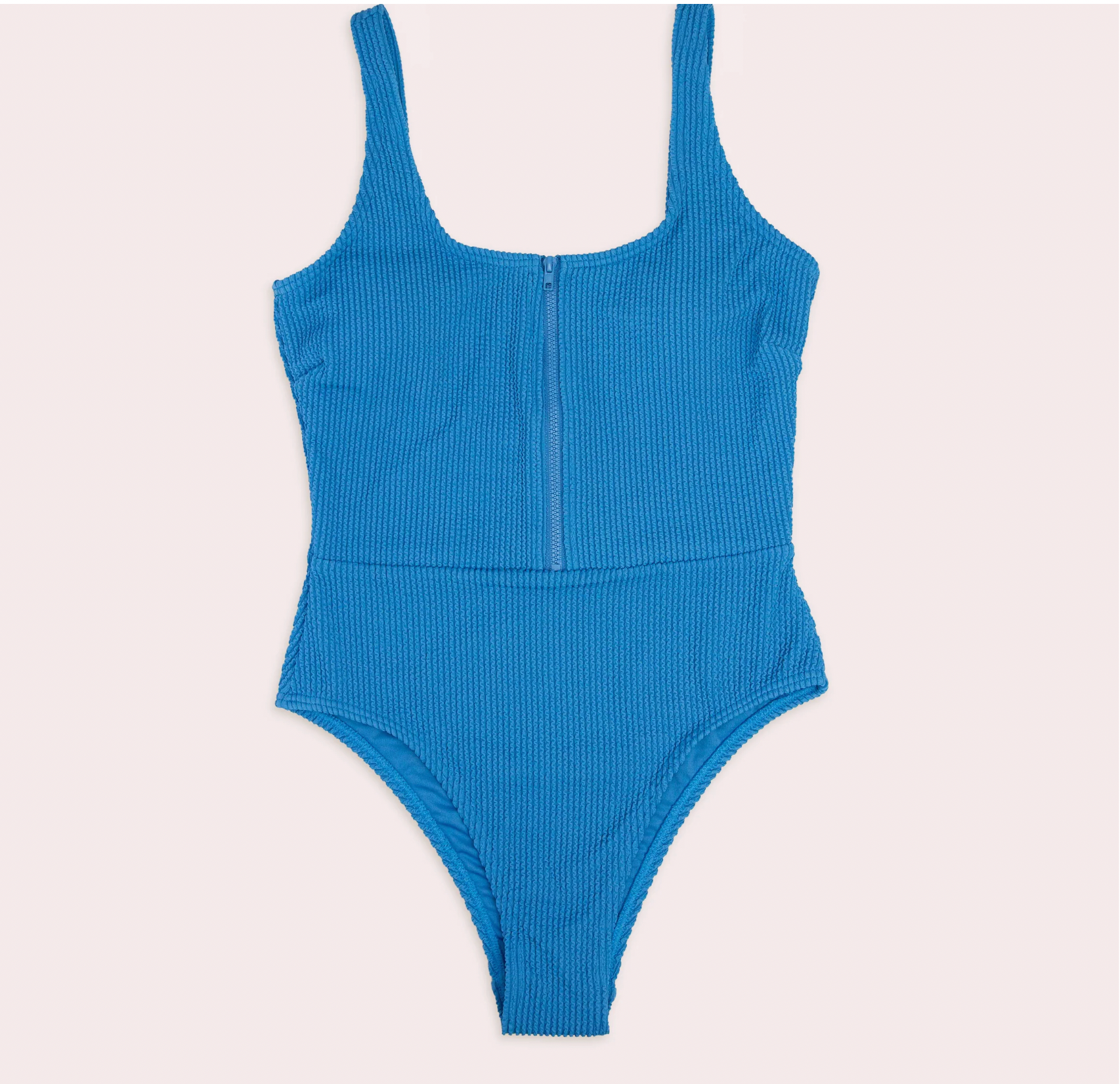 Designed for comfort and confidence; the Lagoon Curve One Piece is made from recycled crinkle fabric that stretches and supports. Fully lined with a hidden nursing pad pocket and a zip-front opening, it’s practical yet flattering.