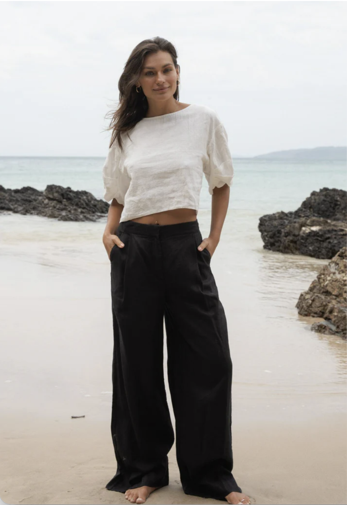 Our OLI linen pants are crafted from 100% EUROPEAN FLAX. These full length pants feature a straight wide leg, side pockets, front zipper, back leg seams, and an elastic back waist band. Perfectly put together with French seam detailing.
